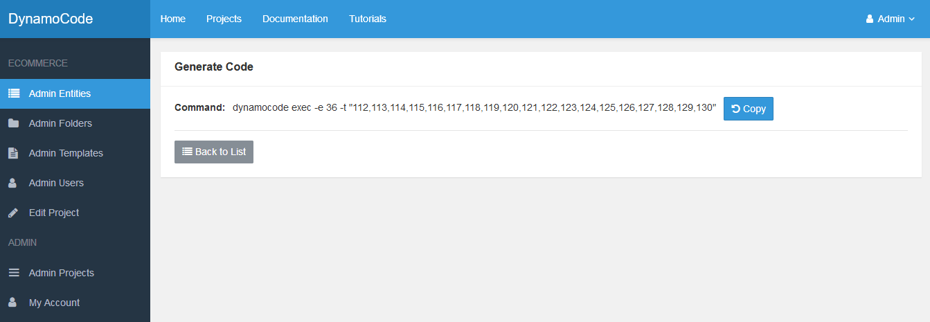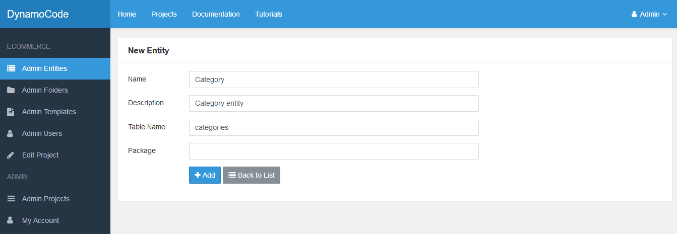 Select Admin option for the new ECommerce Project.